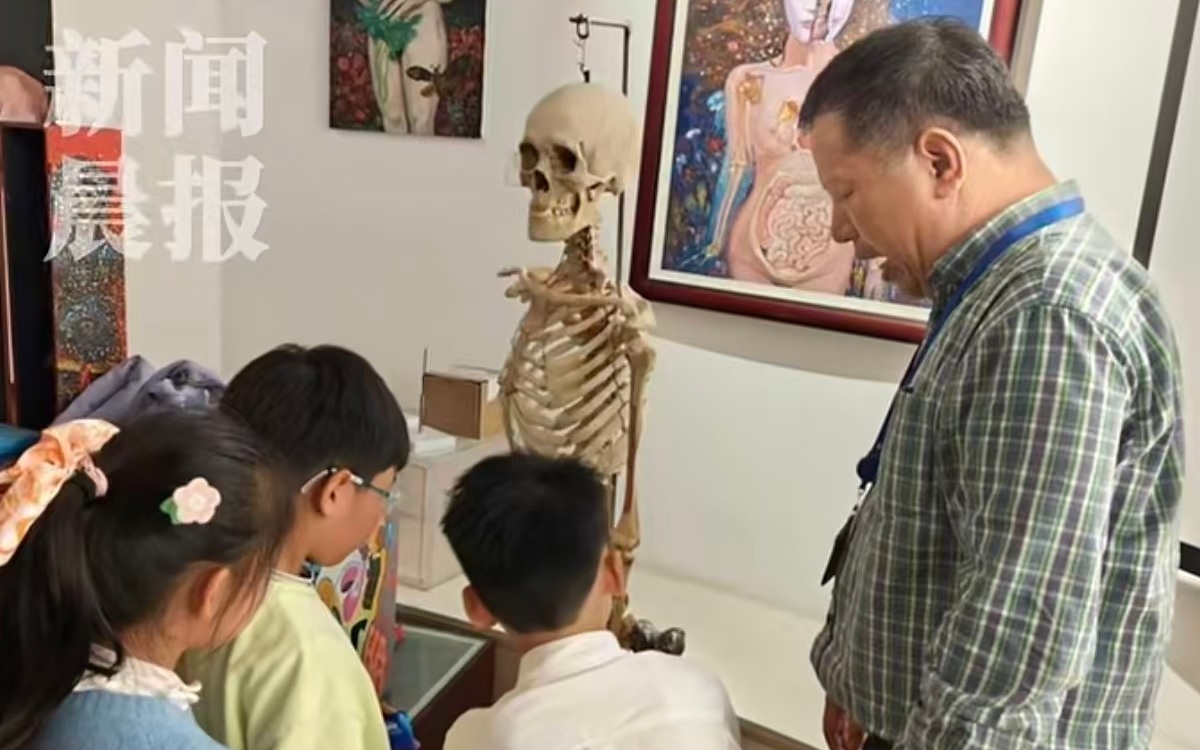 另一边是复旦大学人体科学馆,7岁女孩摔坏了人体科学馆的标本,馆长蹲下、递纸巾、送巧克力,等她情绪平复后,带她进一步参观体验。
